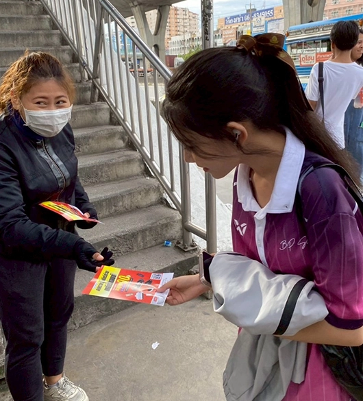 ทีมแจกใบปลิวผ่านการเทรนด้านการสื่อสาร แจกอย่างมีคุณภาพ เป็นมิตร และพร้อมแนะนำข้อมูลเบื้องต้น ช่วยให้ลูกค้ารู้สึกดี และ “เปิดใจ” ต่อแบรนด์ตั้งแต่แรกที่พบ